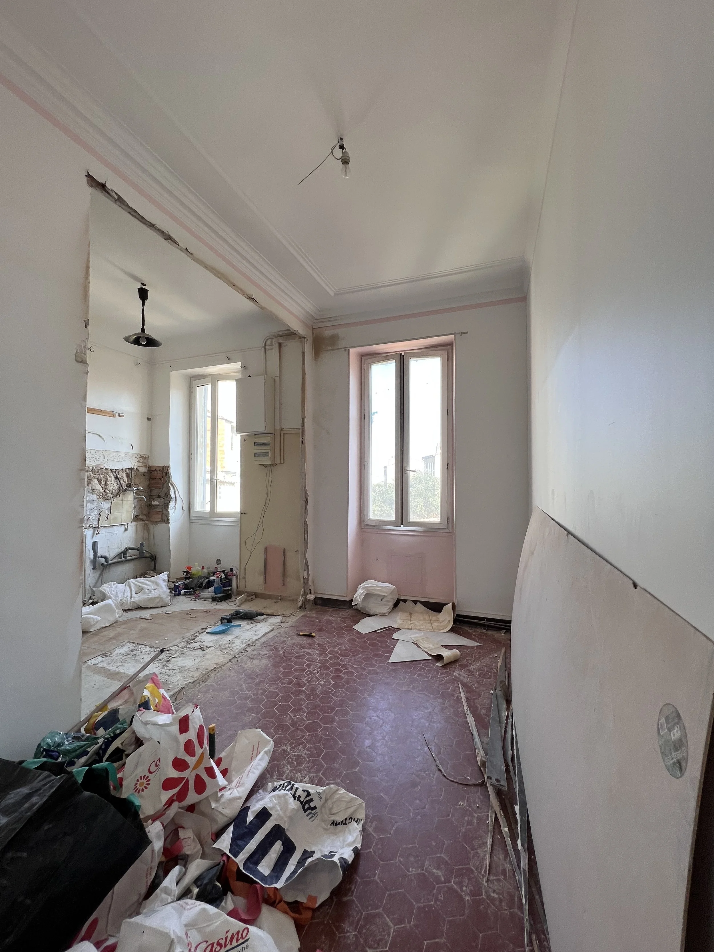 Rénovation d’un appartement type T4.Réalisation : 2022Lieu : Marseille 5èmeMontant des travaux : 50 000€ TRAVAUX